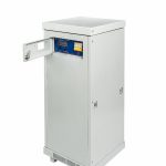 Работает по принципу вольтдобавки и способен выдерживать четырёхкратную перегрузку в течение 10 секунд. Конструктивно выполнен в металлическом корпусе напольного исполнения с вентиляционными отверстиями и оборудован вентиляторами для обеспечения оптимального температурного режима работы. Индикация выполнена на ЖК-индикаторах с сенсорной панелью регулирования выходного напряжения в пределах 210В-230В с дискретностью 2В.